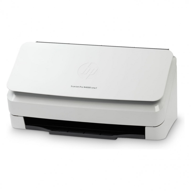 "HP Scanjet Pro N4000 snw1 Sheet-feed Scanner. Maximum scan size: 216 x 3100 mm, Optical scanning resolution: 600 x 600 DPI. Scanner type: Sheet-fed scanner, Product colour: Black, White. Sensor type: CMOS CIS, Daily duty cycle (max): 4000 pages, Scanning noise level: 59 dB. Auto document feeder (ADF) input capacity: 50 sheets. Maximum ISO A-series paper size: A4, Scanning media types supported: Business Card, Plastic Card, Auto Document Feeder (ADF) media weight: 40 - 210 g/m²"\n"Fast, affordable, and designed to handle everything from simple colour jobs to complex workflows. Quickly and reliably digitise larger projects with scan speeds up to 40 ppm/80 ipm and a 50-page ADF.[1] Recommended for 4,000 pages per day."