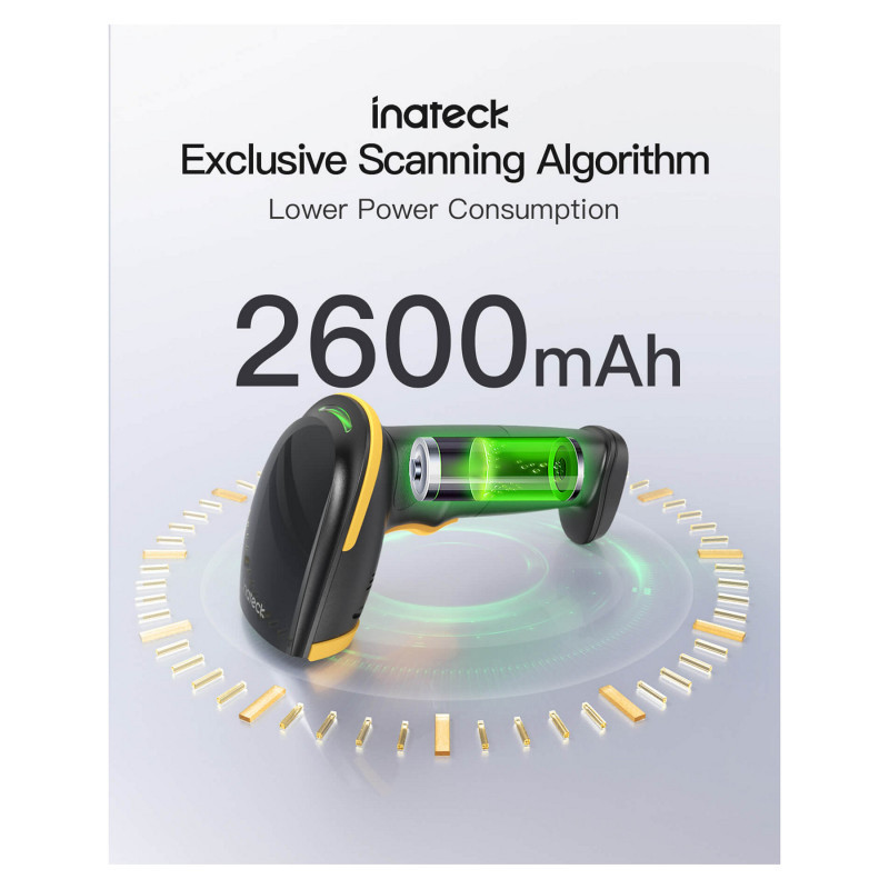 Super Durable: Inateck Hyper Series barcode scanners, powered by advanced battery algorithms, boast lower power consumption for maximum battery life. Under normal scanning frequency, one charge lasts for 3 months, and under high-frequency usage, one charge lasts for 1 month, eliminating worries about battery life.