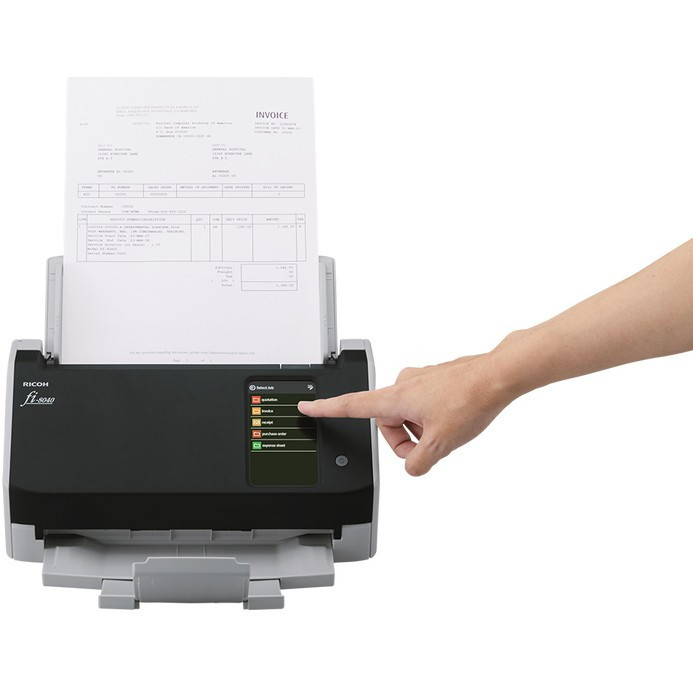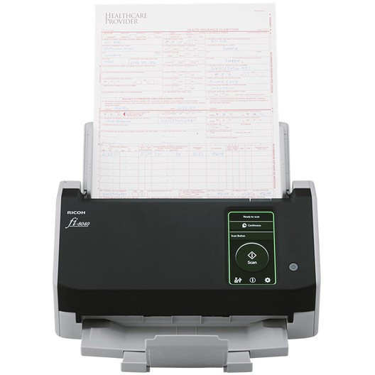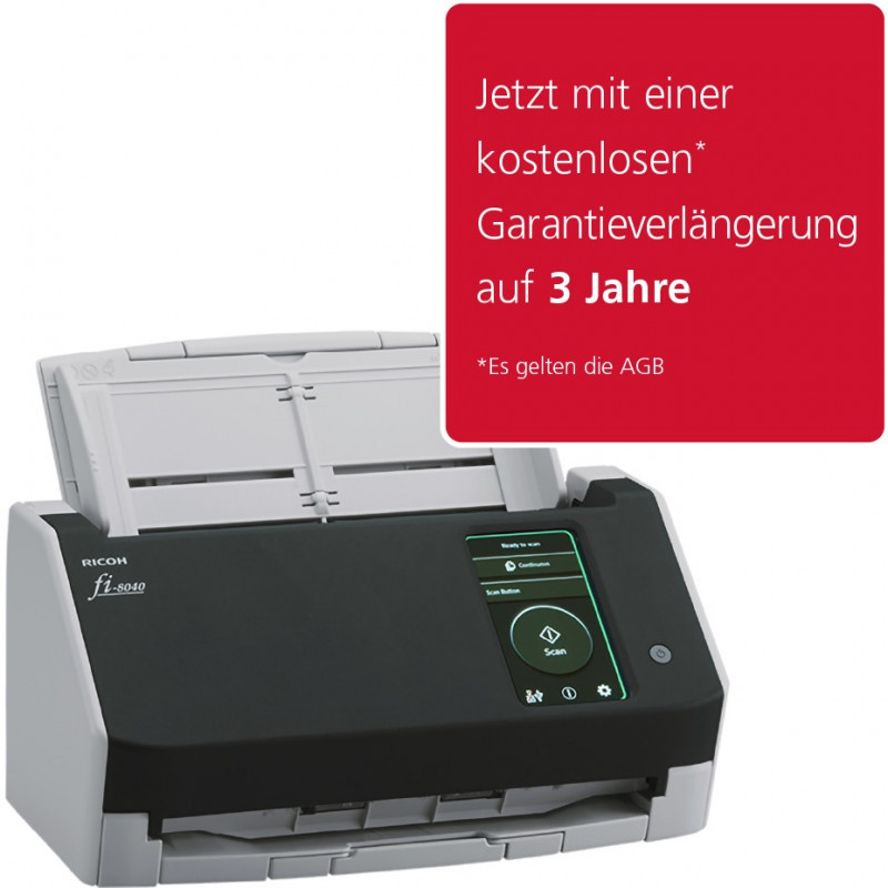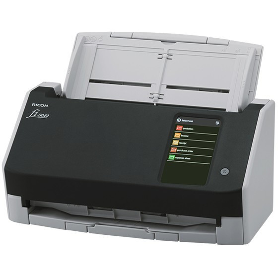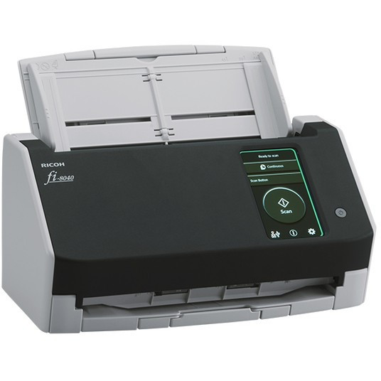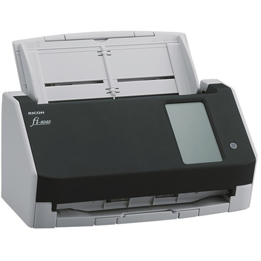 "Ricoh fi-8040. Maximum scan size: 210 x 297 mm, Optical scanning resolution: 600 x 600 DPI, Output colour depth: 24 bit. Scanner type: ADF + Manual feed scanner, Product colour: Black, Grey, Display diagonal: 10.9 cm (4.3""). Sensor type: Dual CIS, Daily duty cycle (max): 6000 pages, Light source: RGB LED. Auto document feeder (ADF) input capacity: 50 sheets. Maximum ISO A-series paper size: A4, Scanning media types supported: Business Card, Plain paper, Plastic Card, Post Card(JPN), ISO A-series sizes (A0...A9): A4, A5, A6"\n"Incredible image quality, flexible connectivity and intuitive user experience, at a touch