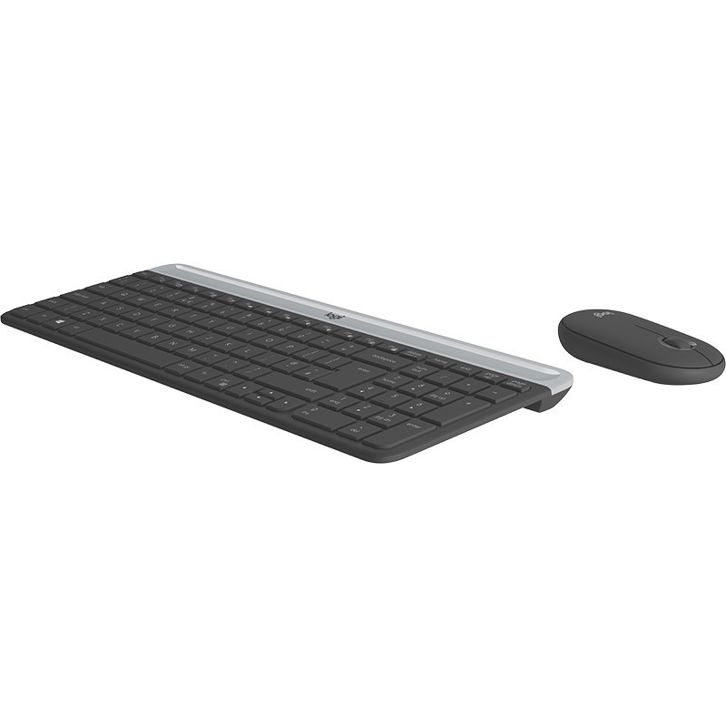 "Logitech Slim Wireless Combo MK470. Keyboard form factor: Full-size (100%). Keyboard style: Straight. Connectivity technology: Wireless, Device interface: RF Wireless, Keyboard layout: QWERTY, Recommended usage: Universal. Product colour: Graphite. Mouse included"\n