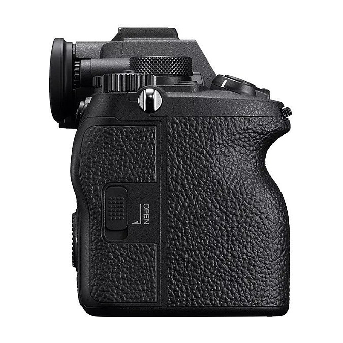 The camera's Quad-VGA OLED viewfinder has roughly 1.6x the resolution of the α7 III viewfinder, with a 37.3° FOV and a 23mm high eyepoint.