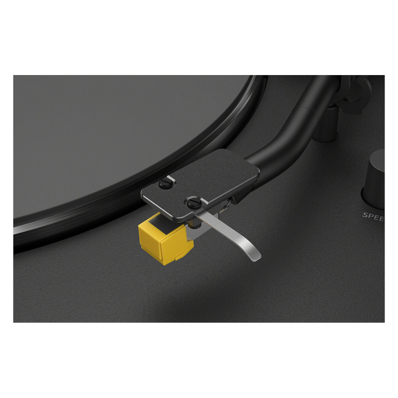 The precision-built, one-piece cabinet reduces unwanted vibrations. It features an aluminium tonearm to ensure smooth tracking, a die-cast aluminium platter for strength and weight, and a high-grip rubber mat to hold each record firmly in place.