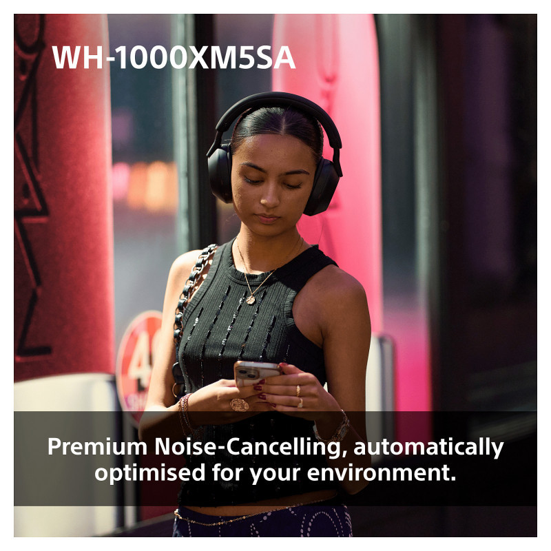 From airplane noise to people’s voices, our WH-1000XM5SA wireless headphones with multiple microphone noise cancelling keep out more high and mid frequency sounds than ever. And with Auto NC Optimizer, noise cancelling is automatically optimised based on your wearing conditions and environment.