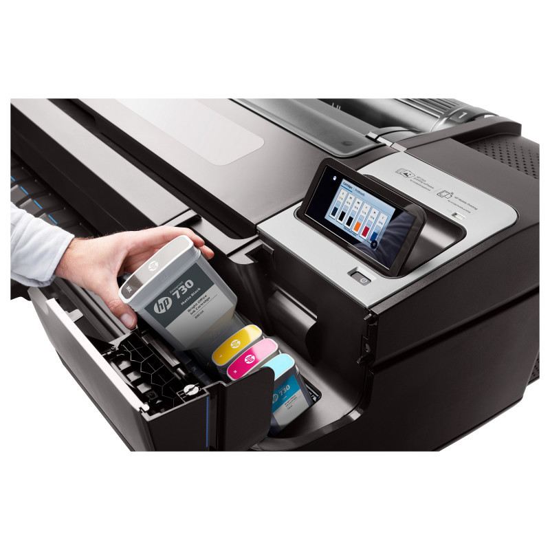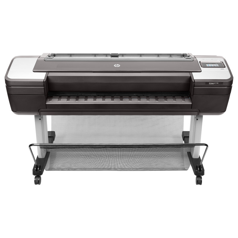 "HP Designjet T1700dr 44-in Printer. Print technology: Thermal inkjet, Maximum resolution: 2400 x 1200 DPI, Page description languages: HP-GL/2, TIFF, JPEG, CALS G4, URF. Accuracy: 0.1%. Maximum print size: 1118 x 1676 mm, Paper tray media types: Coated paper, Semi-glossy paper, Glossy paper, Bond paper, Photo paper, Matte paper, Heavy paper,..., ISO A-series sizes (A0...A9): A0, A1, A2, A3, A4. USB connector: USB Type-A, Mobile printing technologies: HP ePrint. Product colour: Grey, Internal memory: 128000 MB, Internal storage capacity: 500 GB"\n" Confidently take CAD, GIS colour reproduction to the next level with a 44-in (1118 mm) printer that delivers powerful security features, high productivity on even the most complex files with the Adobe PDF driver[2], and bright and precise colours.