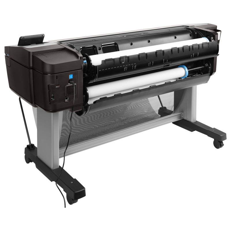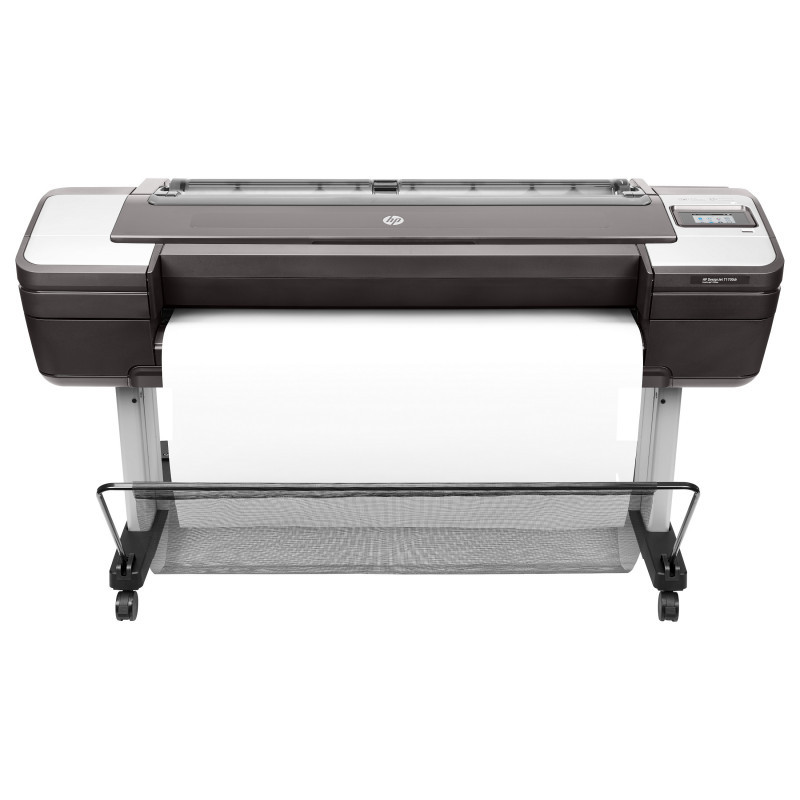 "HP Designjet T1700dr 44-in PostScript Printer. Print technology: Thermal inkjet, Maximum resolution: 2400 x 1200 DPI, Page description languages: PostScript 3, PDF 1.7, HP-GL/2, TIFF, JPEG, CALS G4, URF. Accuracy: 0.1%. Maximum print size: 1118 x 1676 mm, Paper tray media types: Coated paper, Semi-glossy paper, Glossy paper, Bond paper, Photo paper, Matte paper, Heavy paper,..., ISO A-series sizes (A0...A9): A0, A1, A2, A3, A4. USB connector: USB Type-A, Ethernet LAN data rates: 10,100,1000 Mbit/s, Mobile printing technologies: HP ePrint. Product colour: Black, Internal memory: 4096 MB, Internal storage capacity: 500 GB"\n" Confidently take CAD, GIS colour reproduction to the next level with a 44-in (1118 mm) printer that delivers powerful security features, high productivity on even the most complex files with the Adobe PDF driver[2], and bright and precise colours.