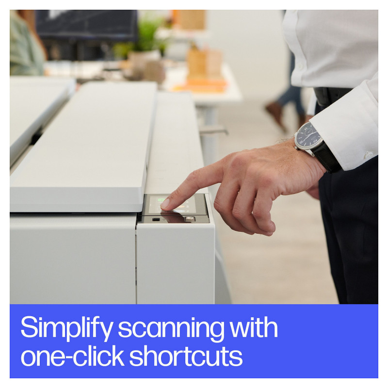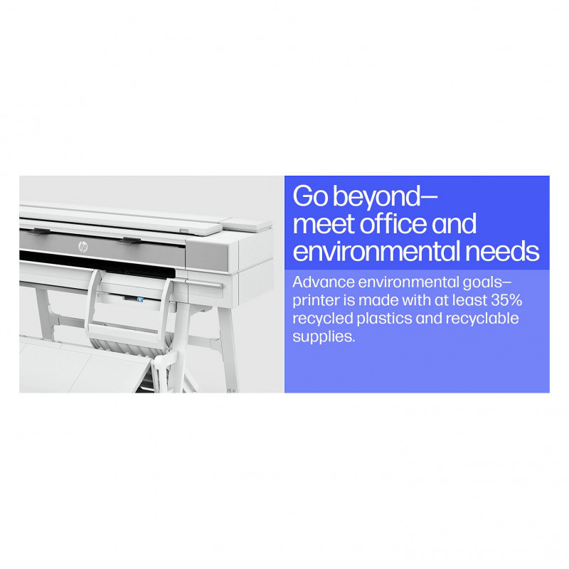 "HP Designjet T950 36-in Multifunction Printer. Print technology: Thermal inkjet, Maximum resolution: 2400 x 1200 DPI, Page description languages: PDF, HP-GL/2, TIFF, JPEG, HP-RTL, CALS G4, URF. Copying: Colour copying, Copier resize: 25 - 400%. Scanning: Colour scanning, Optical scanning resolution: 600 x 600 DPI, Scanner type: Sheet-fed scanner. Maximum print size: A0 (841 x 1189 mm), Paper tray media types: Coated paper, Plain paper, Bond paper, Photo paper, Matte paper, Banner, Heavy paper, Satin paper, ISO A-series sizes (A0...A9): A0, A1, A2, A3, A4. Mobile printing technologies: Apple AirPrint, HP ePrint"\n" Boost productivity with the world’s most efficient A4-A0 experience.[1] Do it all—print multi-size CAD and renders with the integrated input/output tray. Save time with HP Click. And go beyond with this robust and compact plotter.
