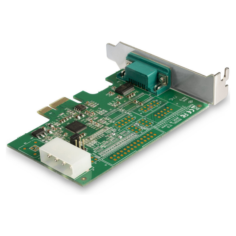 "StarTech.com 1-port PCI Express RS232 Serial Adapter Card - PCIe RS232 Serial Host Controller Card - PCIe to Serial DB9 - 16950 UART - Low Profile Expansion Card - Windows & Linux. Host interface: PCIe, Output interface: Serial, Expansion card standard: PCIe 1.1. Product colour: Green, Mean time between failures (MTBF): 277385 h. Chipset: Asix AX99100, Baud rate: 921.4 Kbit/s, FIFO (First In, First Out): 256 B. Windows operating systems supported: Windows 10, Windows 10 Education, Windows 10 Education x64, Windows 10 Enterprise, Windows 10..., Server operating systems supported: Windows Server 2003, Windows Server 2008 R2, Windows Server 2012, Windows Server 2012 R2, Windows.... Width: 67 mm, Depth: 98 mm, Height: 150 mm"\n"PCI Express to Serial Adapter | 921.4Kbps | Windows® and Linux® Compatible