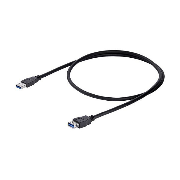 "StarTech.com 1m Black SuperSpeed USB 3.0 Extension Cable A to A - M/F. Cable length: 1 m. Connector 1: USB A, Connector 2: USB A, USB version: USB 3.2 Gen 1 (3.1 Gen 1), Maximum data transfer rate: 5 Gbit/s, Connector contacts plating: Nickel, Product colour: Black"\n"Extend your SuperSpeed USB 3.0 cable by up to an additional meter
