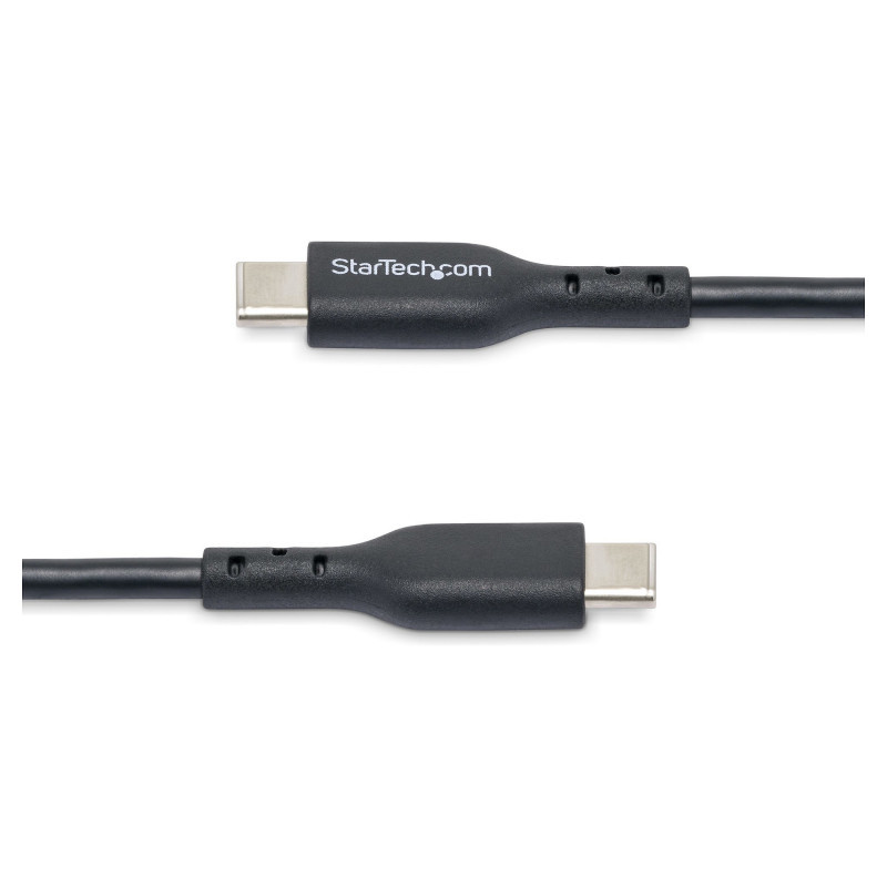 "StarTech.com 1m (3ft) USB C Charging Cable, USB-C Cable, USB 2.0 Type-C Laptop Charger Cord, 60W 3A Power Delivery, TPE Jacket, USB-C Data Transfer Cable, M/M. Cable length: 1 m. Connector 1: USB C, Connector 2: USB C, USB version: USB 2.0, Maximum data transfer rate: 0.48 Gbit/s, Connector contacts plating: Nickel, Product colour: Black"\n"Connect a USB Type-C device to a USB-C wall charger or host computer