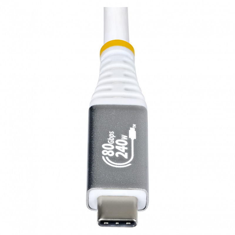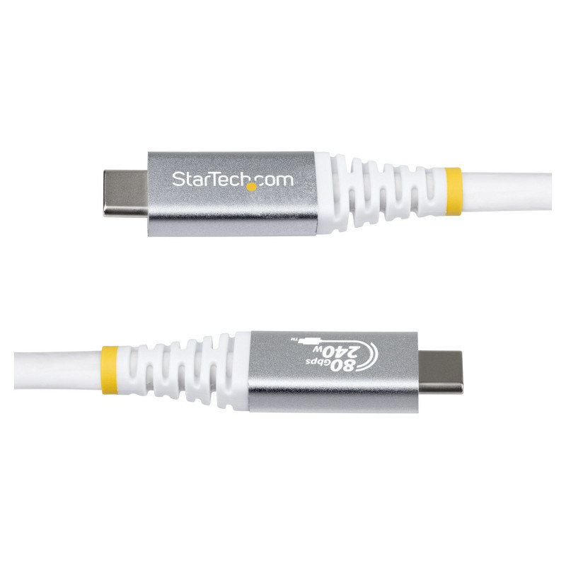 "StarTech.com 1m (3ft) USB4 Cable, 80Gbps, USB-IF Certified USB-C Cable, 240W PD, 8K 120Hz/4K 240Hz DP2.1 DP80, TPE Jacket, Thunderbolt 4 Compatible - White USB-C Cord. Cable length: 1 m. Connector 1: USB C, Connector 2: USB C, USB version: USB4 Gen 4x2, Maximum data transfer rate: 80 Gbit/s, Connector contacts plating: Nickel, Product colour: White"\n"Use this USB-IF Certified USB-C cable for fast and reliable connections to your USB4 devices