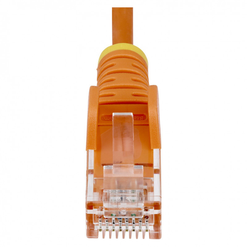 "StarTech.com 3m Orange Slim CAT6 Ethernet Cable, Snagless, 100W PoE, UTP, LSZH, 28AWG Pure Bare Copper Wire, Slim RJ45 Network Patch Cord w/Strain Reliefs, Individually Tested. Cable length: 3 m, Cable standard: Cat6, Cable shielding: U/UTP (UTP), Connector 1: RJ-45, Connector 2: RJ-45, Connector contacts plating: Gold, Data transfer rate: 1000 Mbit/s, Product colour: Orange"\n"Route Slim Cat6 cables through high density installations for optimal flexibility and airflow
