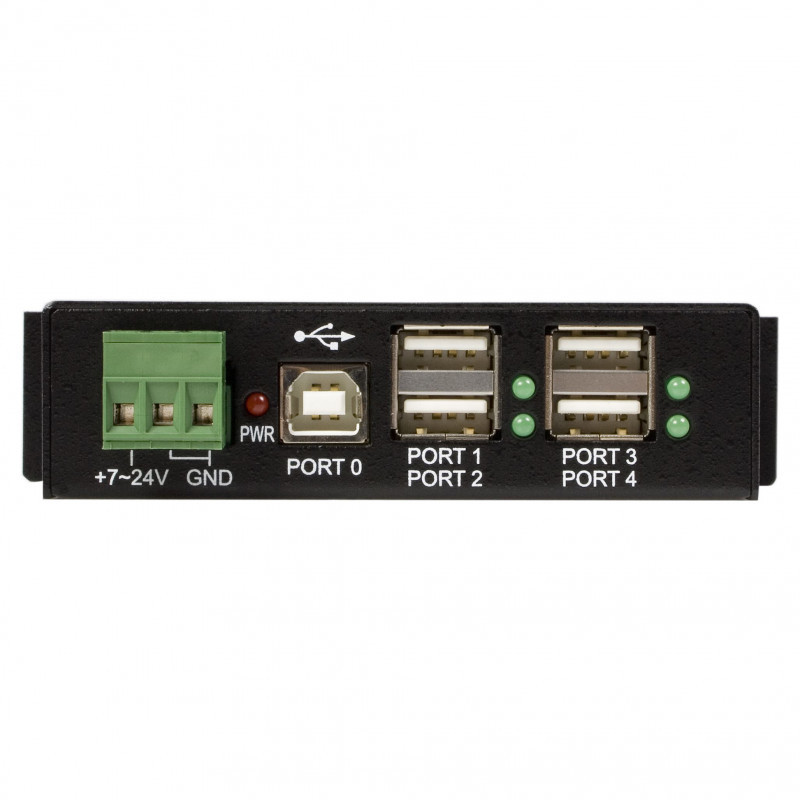 This industrial USB hub delivers reliable performance with a metal, heavy-duty housing. It supports wide-range 7-24V DC terminal block input, giving you the flexibility to power the hub as required, based on your own power input capabilities.