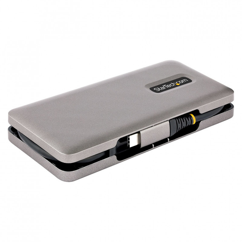 This USB-C hub is a compact and lightweight portable laptop accessory. The attached cable measures 12.6in (32cm) in length. This cable can be stored when the hub is being transported in a laptop bag, facilitating tangle-free stow-away portability.