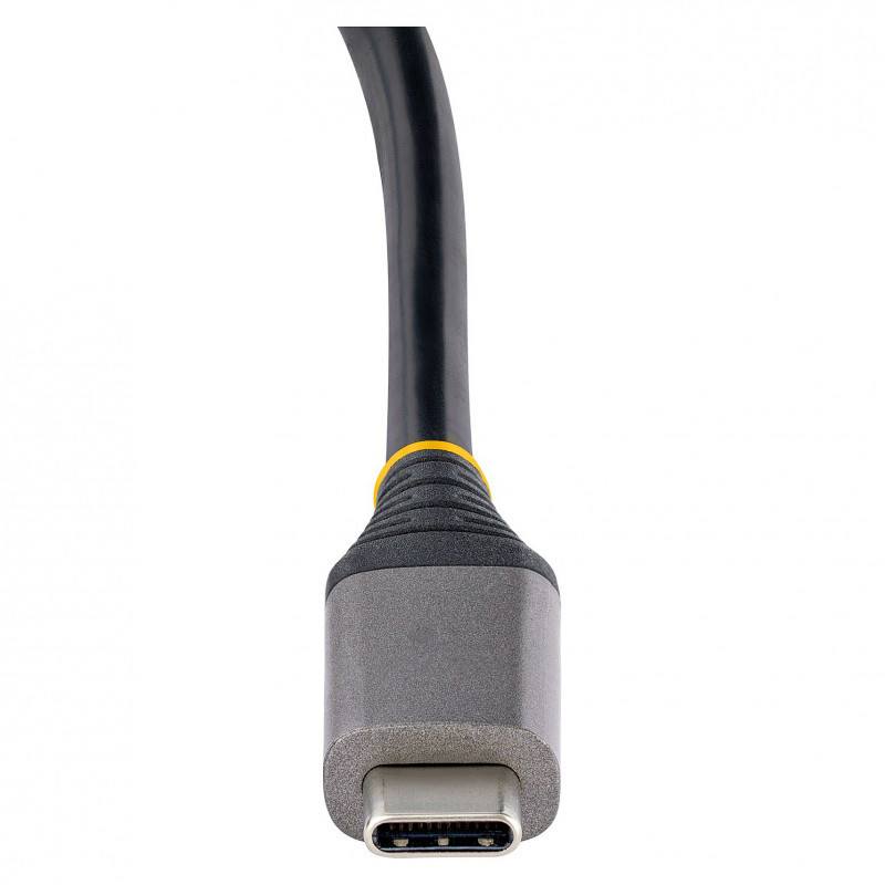 "StarTech.com 4-Port USB-C Hub, 4x USB-C Ports, USB 3.2 Gen 2 (10Gbps) - Portable USB C Hub with 100W Power Delivery Pass-Through - USB Type C Hub w/ 12.6in/32cm Wrap-Around Cable. Connectivity technology: Wired, Host interface: USB 3.2 Gen 2 (3.1 Gen 2) Type-C, USB Power Delivery up to: 100 W. Product colour: Grey, Data transfer rate: 10 Gbit/s, Housing material: Plastic. Power source type: USB, Power consumption (typical): 15 W. Width: 60 mm, Depth: 135 mm, Height: 20 mm. Package width: 142 mm, Package depth: 170 mm, Package height: 30 mm"\n"USB 3.2 Gen 2 (10Gbps) | 4x USB-C | 100W Power Delivery Pass-Through | Built-in 12.6 in (32 cm) Wrap-Around Cable