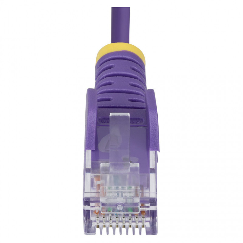 "StarTech.com 50cm Purple Slim CAT6 Ethernet Cable, Snagless, 100W PoE, UTP, LSZH, 28AWG Pure Bare Copper Wire, Slim RJ45 Network Patch Cord w/Strain Reliefs, Individually Tested. Cable length: 0.5 m, Cable standard: Cat6, Cable shielding: U/UTP (UTP), Connector 1: RJ-45, Connector 2: RJ-45, Connector contacts plating: Gold, Data transfer rate: 1000 Mbit/s, Product colour: Purple"\n"Route Slim Cat6 cables through high density installations for optimal flexibility and airflow