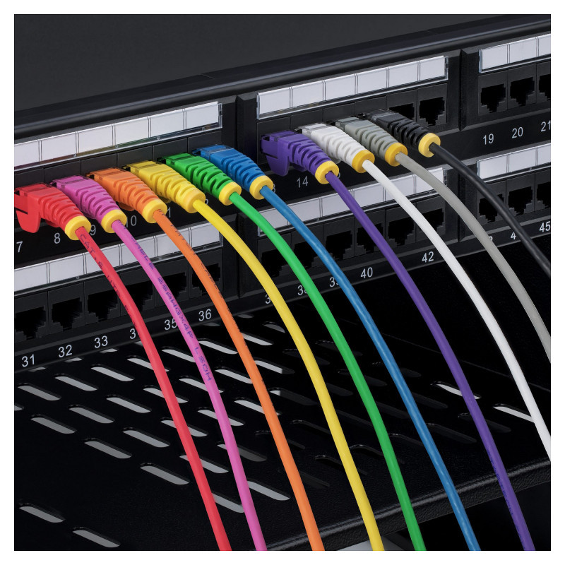 The Slim Cat6 Patch Cord is 36% thinner than standard Cat6 Ethernet cables, enabling greater airflow and heat dissipation in confined spaces. The Slim Cat6 Ethernet cable is also more flexible, for easier cable routing in crowded network racks and patch panels.