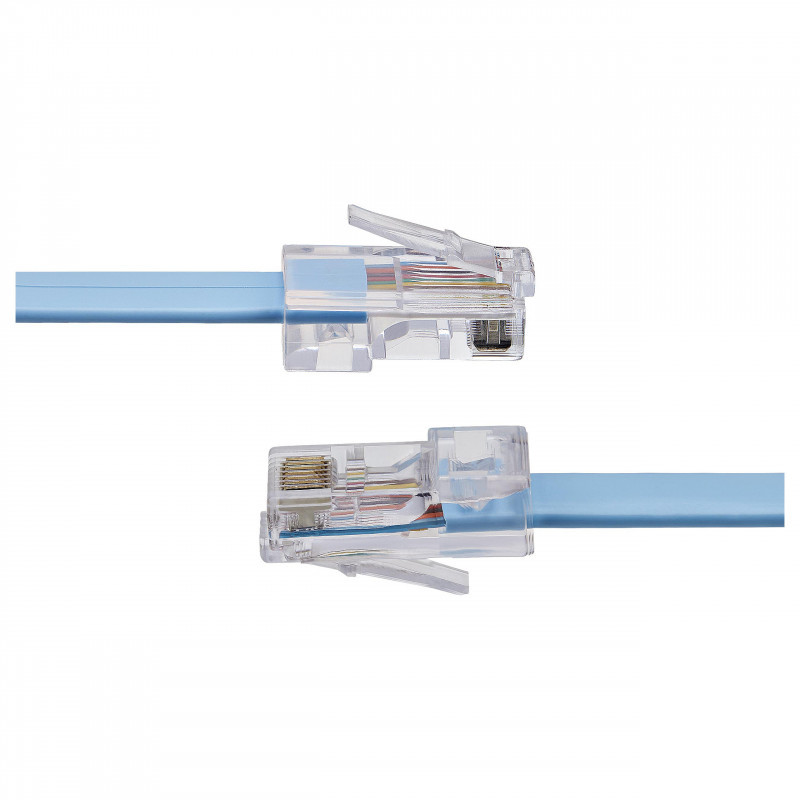 "StarTech.com 6 ft Cisco Console Rollover Cable - RJ45 M/M. Cable length: 1.8 m, Connector 1: RJ-45, Connector 2: RJ-45, Product colour: Blue"\n"This 6ft Cisco Console Cable/Rollover cable is a cost-effective replacement cable which enables you to connect your computer to your Cisco® router, server, or network equipment. This durable Cisco Console Cable is a direct replacement cable that conforms to the Yost Serial Device Wiring Standard.