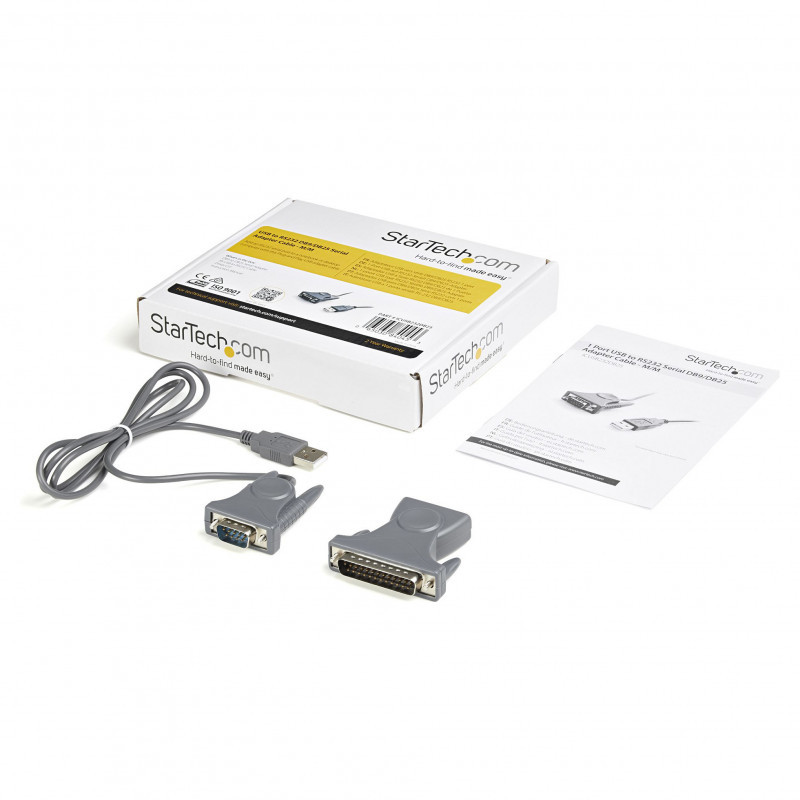 The ICUSB232DB25 USB to RS232 DB9/DB25 Serial Adapter Cable (M/M) lets you connect 9-pin (DB9) or 25-pin (DB25) RS232 serial devices to your laptop or desktop computer through a USB port, as though the computer offered an onboard serial port. The integrated 3-foot (0.9 meter) cable allows it to be connected directly from the serial device to the computer without requiring additional cables. A cost-effective solution that bridges the compatibility gap between modern computers and legacy serial peripherals, this high quality USB/RS232 Serial Adapter cable ships with a DB-9 to DB-25 adapter for connection to varied serial equipment. Backed by a StarTech.com 2-year warranty and free lifetime technical support.