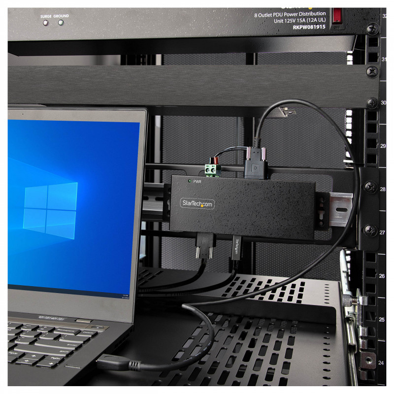 This versatile hub can be powered via the included universal power adapter or the 7-24V DC terminal block, making it ideal for industrial settings or where standard power outlets may be limited.