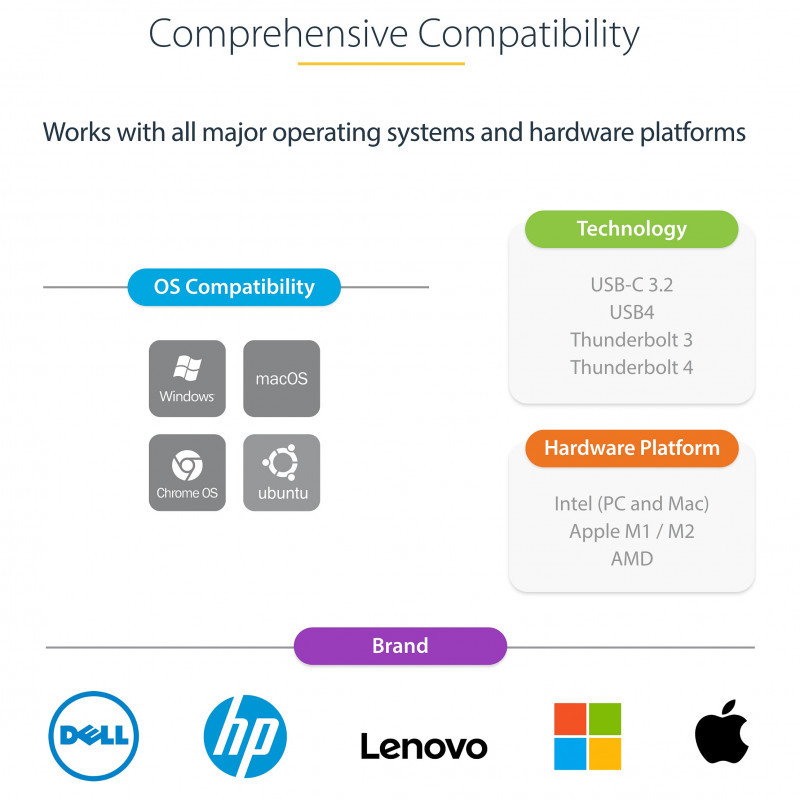 The USB multi-monitor adapter is DisplayLink Certified and supports high-performance dual-monitor 4K 60Hz video resolutions with an integrated DisplayLink DL-6950 Controller.