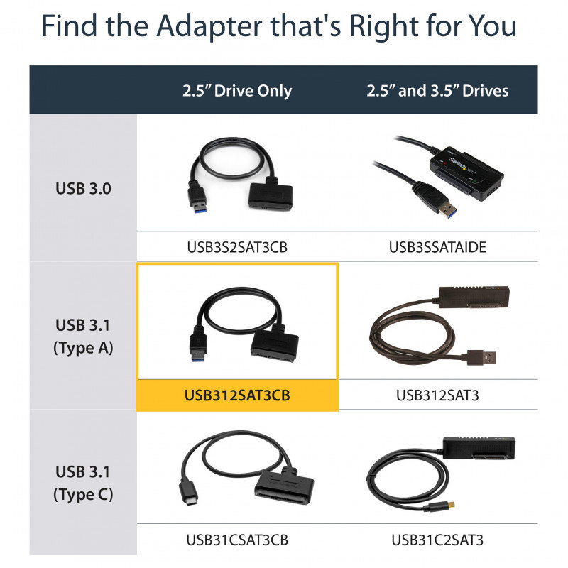 With the adapter cable, you can quickly swap hard drives without having to install your drives into an enclosure. You can copy or retrieve data from a 2.5"" SSD/HDD quickly with no additional accessories required. It gives you easy drive access for data migration, drive cloning and data backup applications, with the fast performance of USB 3.1 Gen 2.
