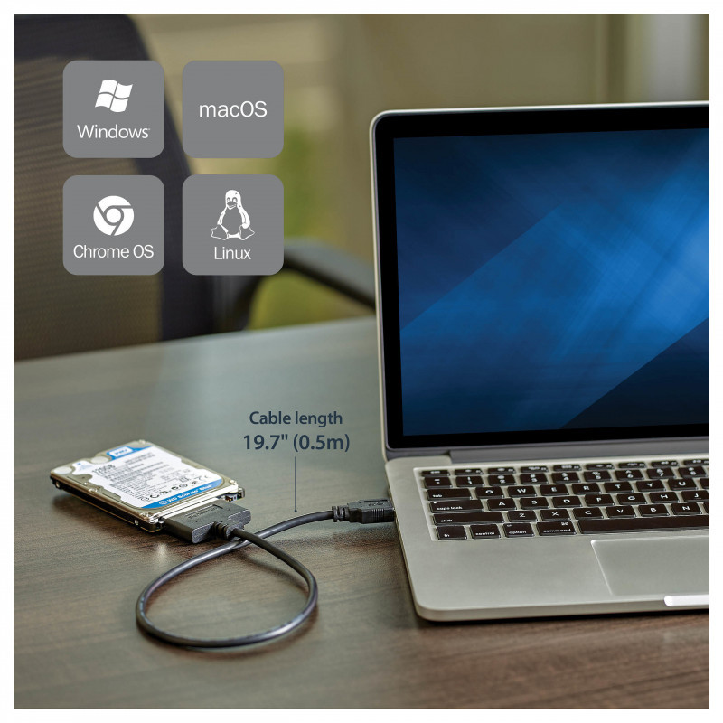 Note: This product is not compatible with 3.5 in. hard drives. For 3.5 in. drive support, please see our USB to SATA Cable with Supplemental Power (USB312SAT3).
