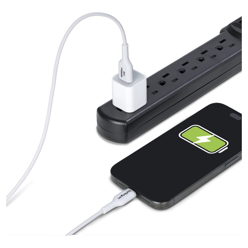 Facilitating up to 3A of output, the USB-C Charger Cord can fast-charge a smartphone or tablet. To use, connect the cable from a USB-C device to a USB-A wall charger.