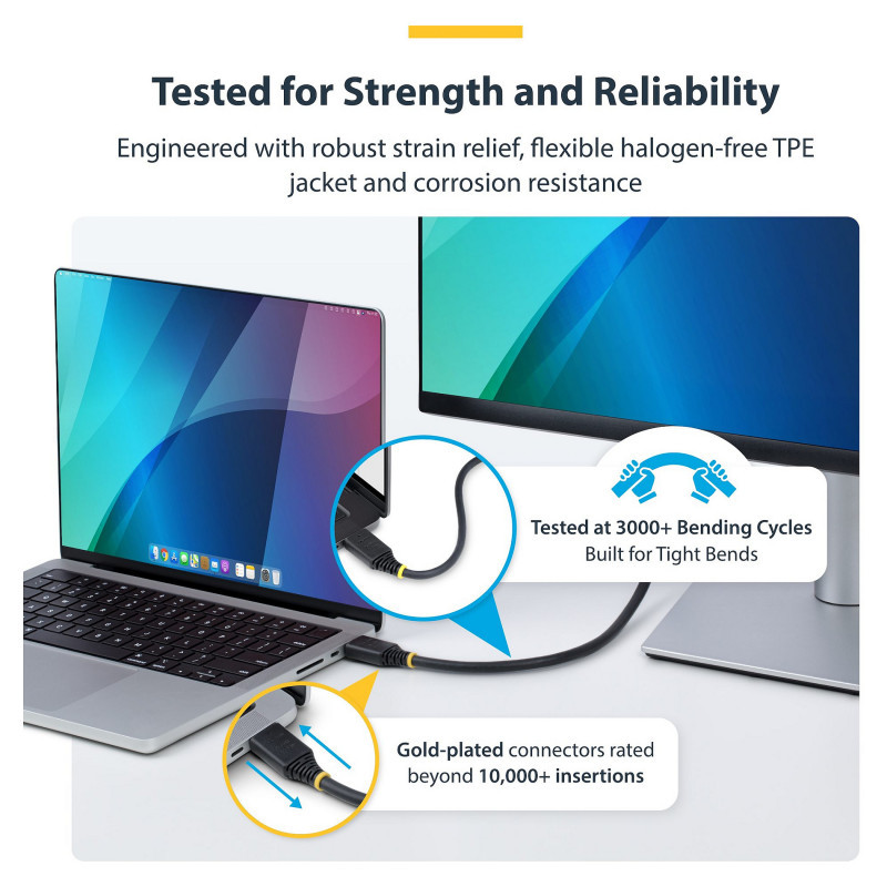 Route this HDMI cord easily around corners, behind displays, between desks and other equipment with a flexible, halogen-free TPE jacket and robust connector strain reliefs. Aluminum-Mylar foil with braided shielding minimizes EMI in dense setups and shared spaces. Gold-plated connectors preserve signal integrity and resist corrosion, and are rated for 10,000+ insertions to support both daily wear and long-term use.