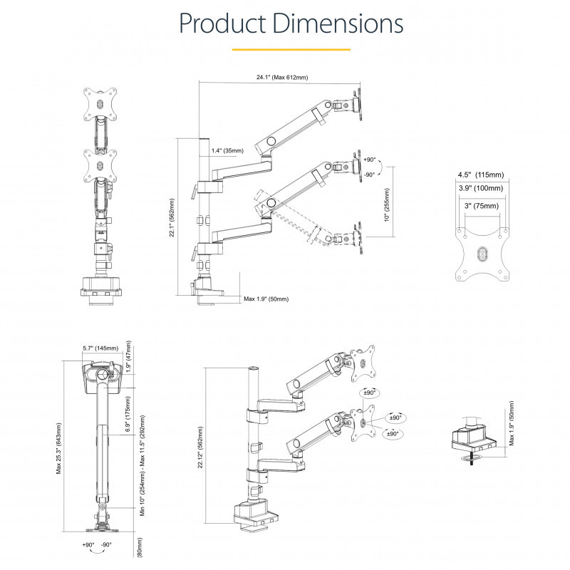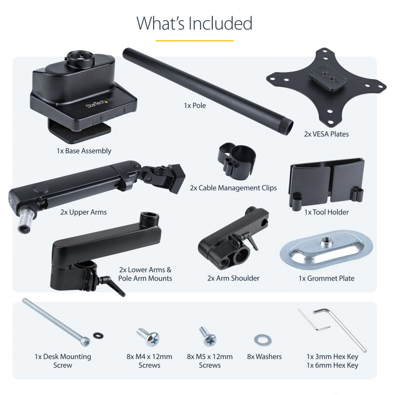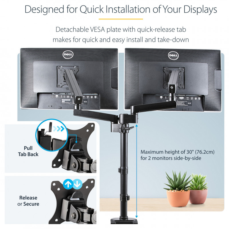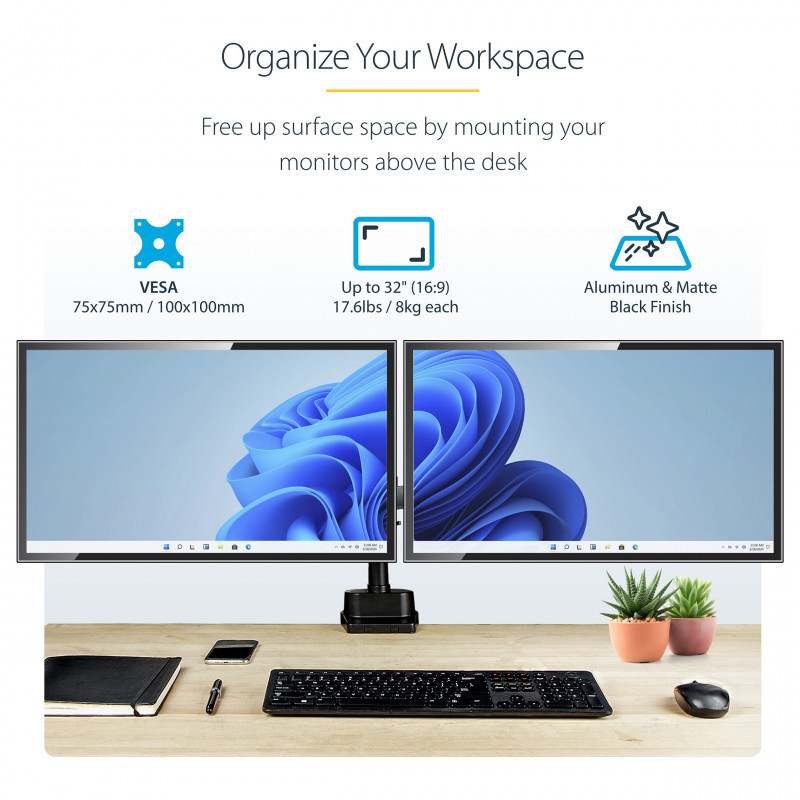 StarTech.com Dual Monitor Halter für Tischmontage - Flexible Monitorarm für 2x VESA Monitore bis zu 32 Zoll(8kg) - Vertikal Stapelbare Arme