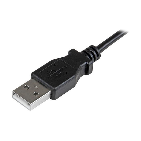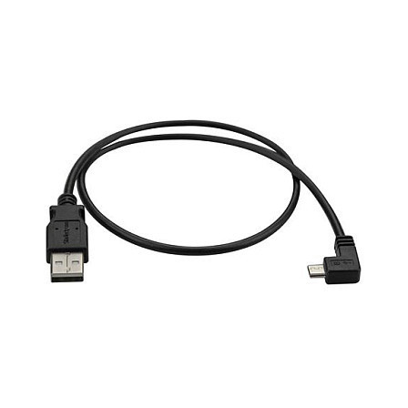 "StarTech.com Micro-USB Charge-and-Sync Cable M/M - Right-Angle Micro-USB - 24 AWG - 0.5 m. Cable length: 0.5 m. Connector 1: USB A, Connector 2: Micro-USB A, USB version: USB 2.0, Connector gender: Male/Male, Maximum data transfer rate: 0.48 Gbit/s, Connector contacts plating: Nickel, Product colour: Black"\n"This Micro-USB cable features 24 AWG wire to provide the full power you need to charge your mobile devices faster. The cable features a right-angled Micro-USB connector, so it’s great for charging your mobile devices in a car, or for accessing your mobile device while it’s connected to a car charger or computer.