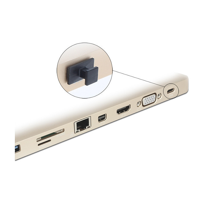 "DeLOCK 64015. Socket type: USB Type-C, Product colour: Black, Material: Polyethylene (PE). Width: 13.9 mm, Depth: 14.2 mm, Height: 7.6 mm. Package type: Polybag. Quantity per pack: 10 pc(s)"\n"With this dust cover by Delock the female port is protected from dirt or damage. The application of the dust cover keeps the sensitive connectors ready for use in the long-term, especially in dusty environments and in the industrial sector."