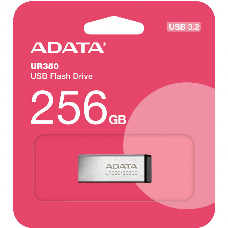 "ADATA UR350. Capacity: 256 GB, Device interface: USB Type-A, USB version: 3.2 Gen 1 (3.1 Gen 1), Read speed: 100 MB/s. Form factor: Capless. Weight: 3.5 g. Product colour: Black, Silver"\n"UR350 USB Flash Drive(Global)