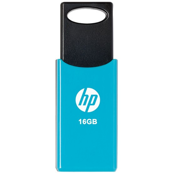 "HP v212w. Capacity: 16 GB, Device interface: USB Type-A, USB version: 2.0, Read speed: 14 MB/s, Write speed: 4 MB/s. Form factor: Slide. Weight: 10.2 g. Product colour: Black, Blue"\n"Sleek look, durable capless design. Perfect for mobile storage solution to store and share your music, photos, files and more."