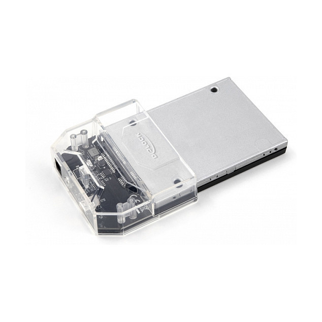 The bottom consists of a stable metal plate with cooling fins. These provide a passive cooling for the inserted memory."