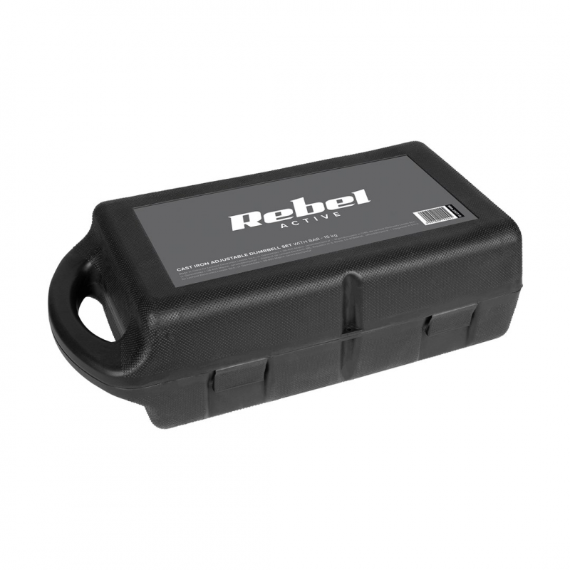 REBEL ACTIVE reguliuojamo svorio hanteliai dėkle, 15 kg, su štanga