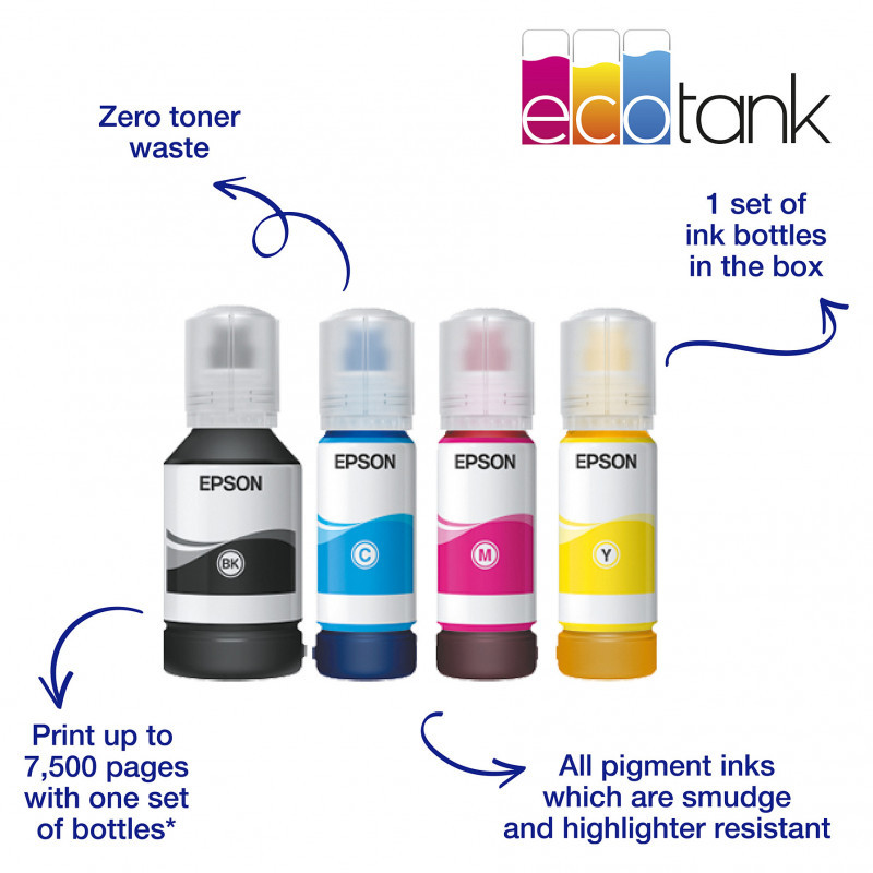 Save every time you print with this EcoTank that delivers an incredibly low cost per page. Unlike other printers, EcoTank features large ink tanks that you fill with low-cost ink bottles.