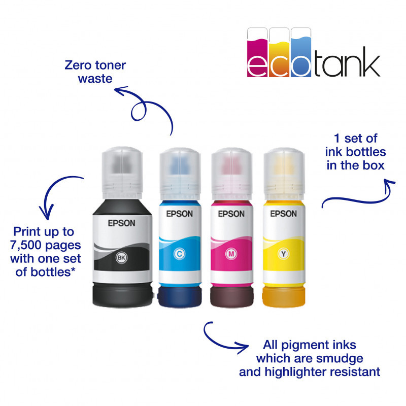 Save every time you print with this EcoTank that delivers an incredibly low cost per page. Unlike other printers, EcoTank features large ink tanks that you fill with low-cost ink bottles.