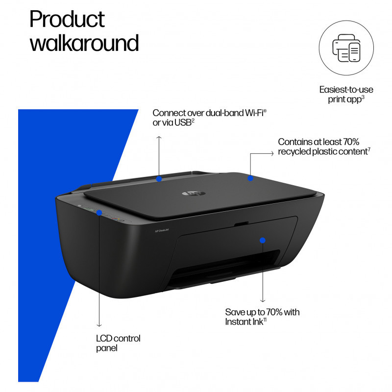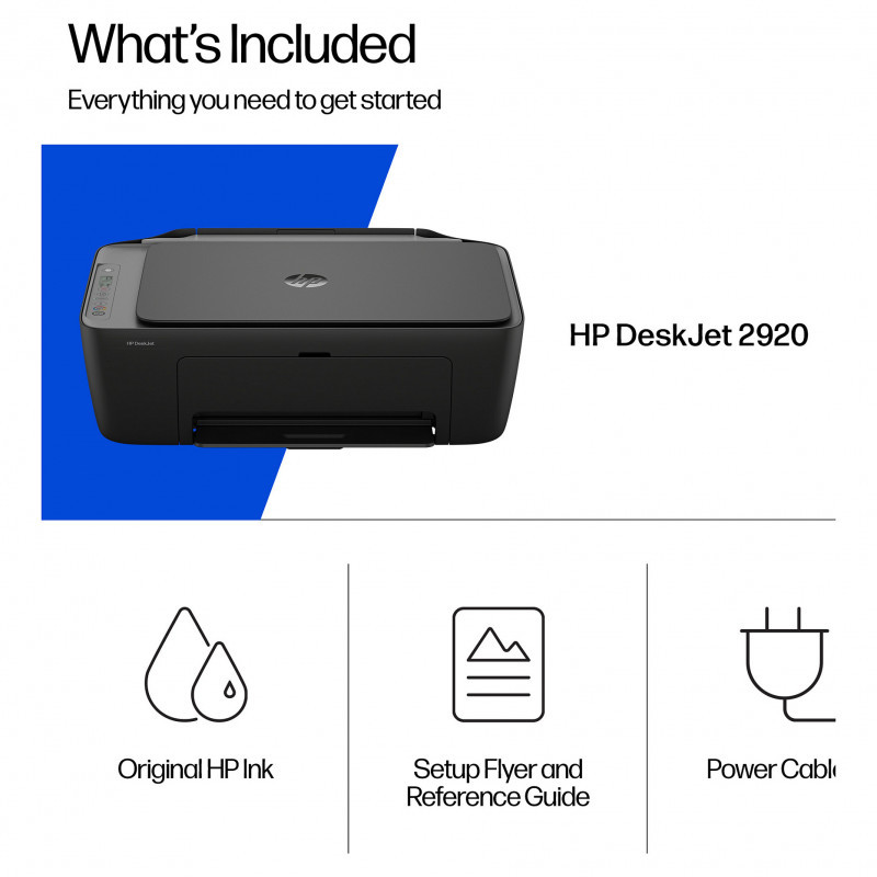 "HP DeskJet 2920 Wireless All-in-One Color Printer. Print technology: Thermal inkjet, Printing: Colour printing, Maximum resolution: 4800 x 1200 DPI, Print speed (colour, normal quality, A4/US Letter): 5.5 ppm. Copying: Colour copying. Scanning: Colour scanning, Optical scanning resolution: 1200 x 1200 DPI. Maximum ISO A-series paper size: A4. Product colour: Grey"\n"Home printing made super simple Setup that’s a breeze thanks to HP's easiest-to-use print app. Print everything from return labels to fun, colorful learning worksheets. Simplify printing, ignite creativity and learning.[3]. HP Instant Ink eligible
