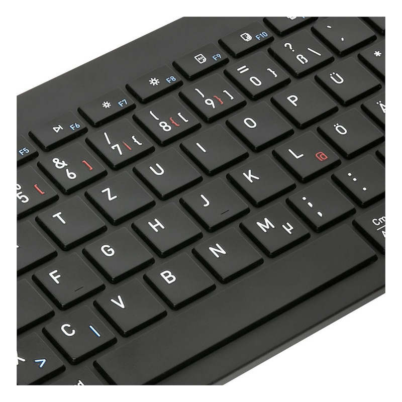 "Targus AKB863DE. Keyboard form factor: Full-size (100%), Connectivity technology: Wireless, Device interface: Bluetooth, Keyboard layout: QWERTZ, Recommended usage: Universal. Product colour: Black"\n"Targus Universal Bluetooth UK-layout Keyboard infused with Antimicrobial Protection. Offering universal compatibility, it pairs and stores up to 3 devices in its memory.