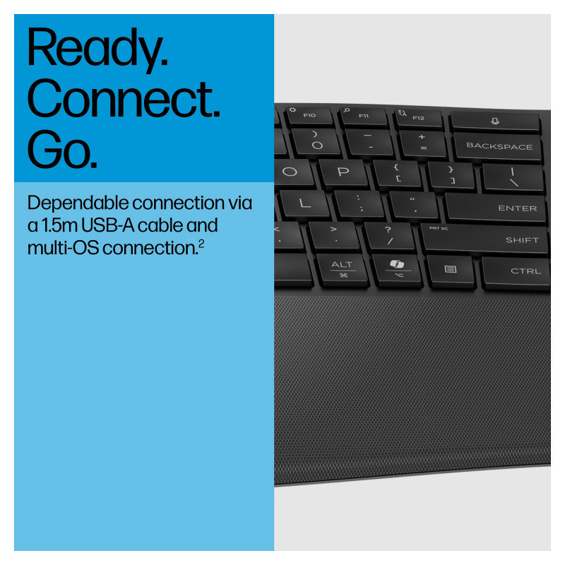 The HP 480 Comfort Wired Keyboard is designed to naturally fit your lifestyle as you type throughout the day. Featuring programmable keys[1], adjustable angle, and multi-OS[2] capability, this keyboard was built for you."