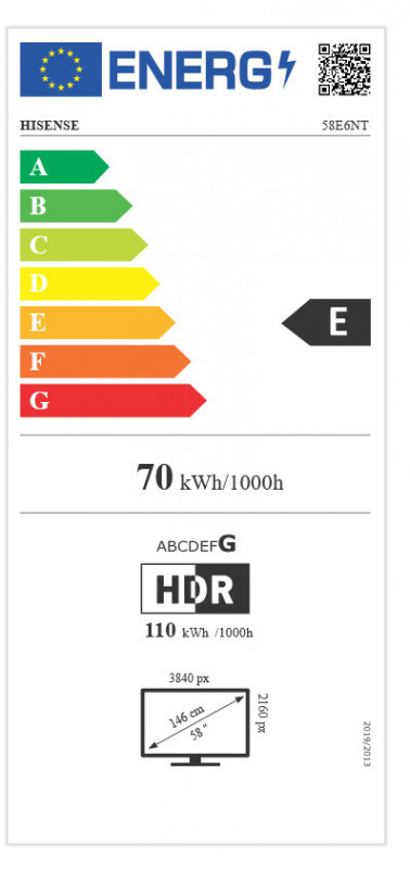 146,0cm/58" (3840x2160) Hisense 58E6NT 16:9 DLED 60Hz HDMI USB WLAN Bluetooth HDR10+ Speaker Black