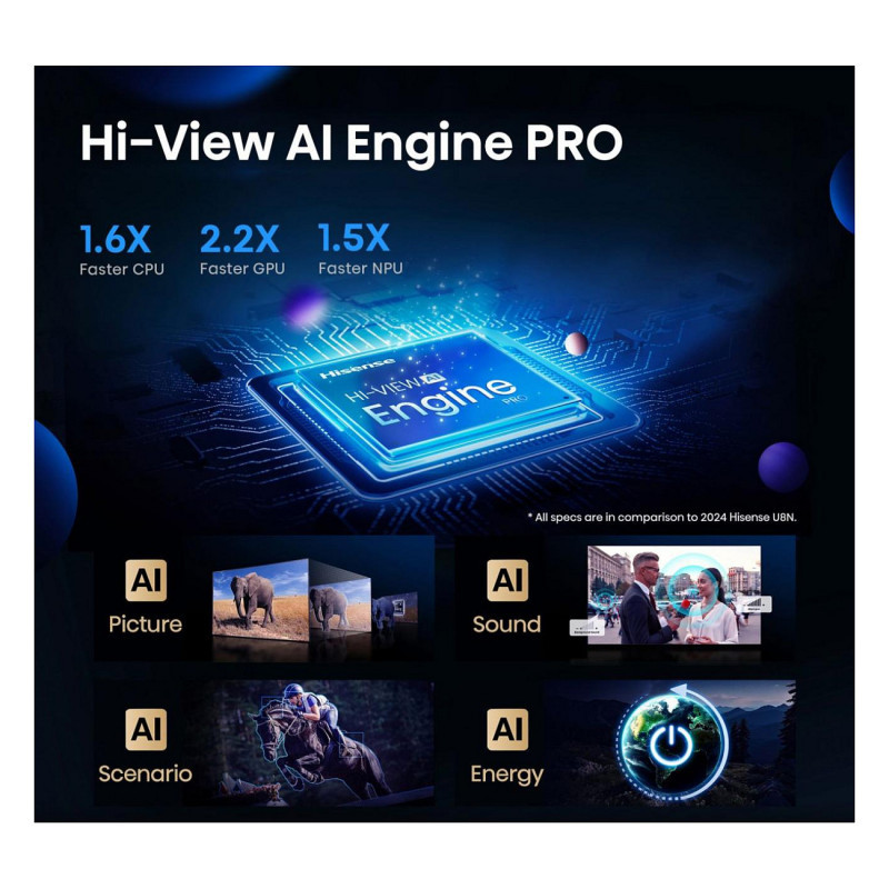 Hi-View AI Engine uses advanced AI technology to upscale your content, no matter the input. Each frame is fine-tuned in real-time delivering incredible images by enhancing resolution, brightness, contrast and colour.