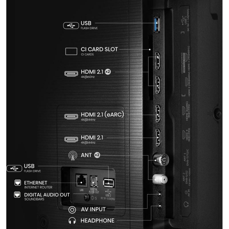 "Hisense 75E77Q PRO. Display diagonal: 190.5 cm (75""), Display resolution: 3840 x 2160 pixels, HD type: 4K Ultra HD, Display technology: QLED, Screen shape: Flat. Smart TV. Response time: 8 ms, Contrast ratio (typical): 2000:1, Native aspect ratio: 16:9. Digital signal format system: DVB-C, DVB-S, DVB-S2, DVB-T, DVB-T2. Wi-Fi, Ethernet LAN. Product colour: Black"\n