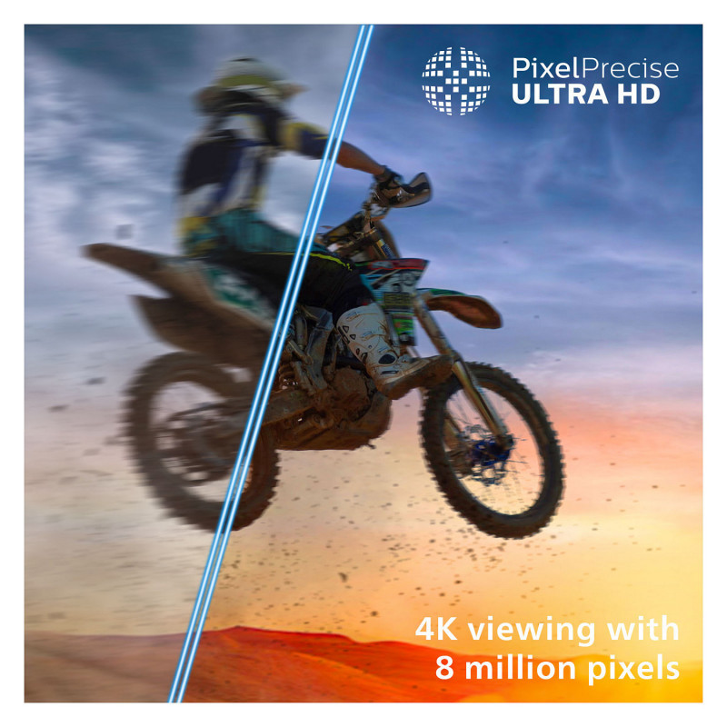 With 8 million pixels all working closely together in harmony, this is 4K viewing like no other. With the sharpest images set to define more detailed, lifelike scenes, nothing captures the moment more truthfully than with this Philips Ambilight TV.
