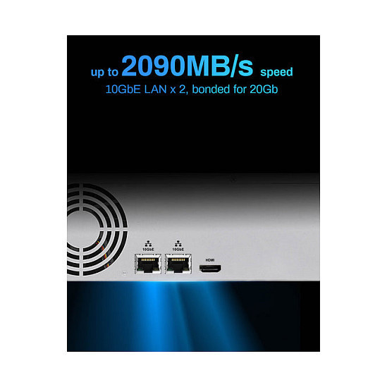 20Gb Lightning-Fast Throughput: The U12-500 Plus NAS server features dual 10GbE Ethernet ports, offering up to 20Gbps bandwidth. With SMB multichannel support, it achieves up to 2090MB/s sequential write speeds and 450MB/s 4K random read/write speeds. This performance ensures seamless image and video handling, making it perfect for film production, post-production, and high-demand virtualized environments.