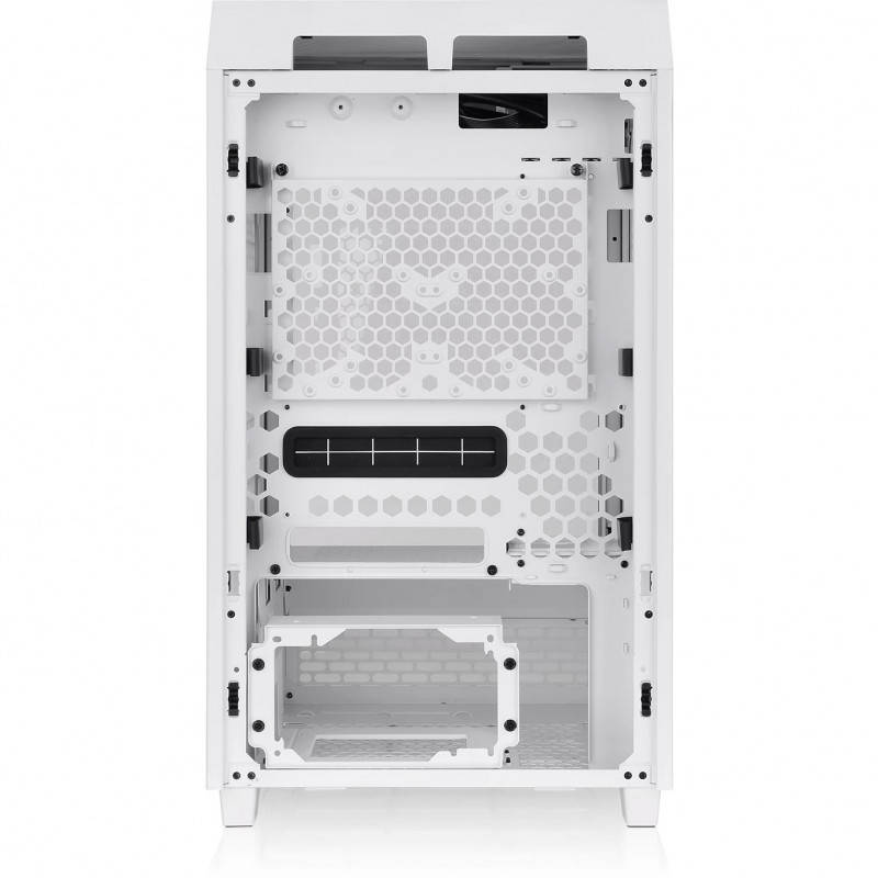 "Thermaltake The Tower 200. Form factor: Mini Tower, Type: PC, Product colour: White. Power supply location: Bottom. Rear fans diameters supported: 120,140 mm, Top fans diameters supported: 120,140 mm, Top radiator sizes supported: 120,140 mm. Supported HDD sizes: 2.5,3.5"". Width: 300 mm, Depth: 280 mm, Height: 537 mm"\n"The Tower 200 Snow is a mini-ITX case with a vertical case design that offers fantastic viewing. It comes with two pre-installed CT140 White fans, each 140mm wide, for exceptional thermal efficiency. It also has enough space for a 4090 GPU and a standard-size PSU, fitting all your high-end components. Moreover, The Tower 200 Snow is compatible with a separately sold LCD panel kit with a 3.9"" LCD display to maximize the PC's visual effects to its full potential."