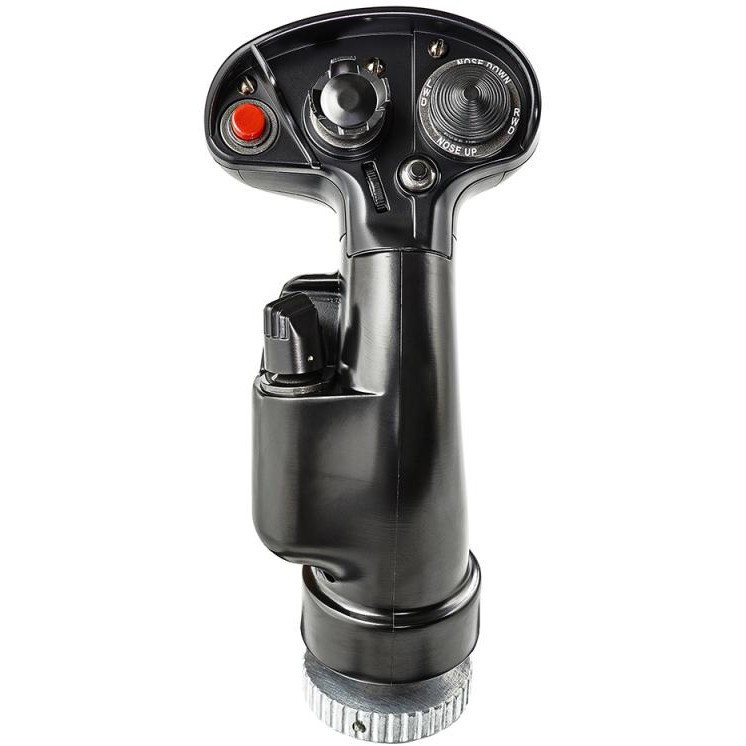 The F/A-18C Hornet™ HOTAS Add-On Grip is compatible with Thrustmaster joystick bases.