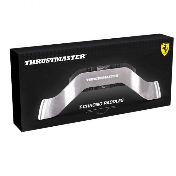 "Thrustmaster T-Chrono. Gaming platforms supported: PC, PlayStation 4, PlayStation 5, Xbox One, Xbox Series S, Xbox Series X, Product colour: Silver, Material: Aluminium. Quantity per pack: 1 pc(s), Package width: 121 mm, Package depth: 273 mm. Weight: 90 g"\n"Thrustmaster T-Chrono Paddles, Push-Pull Paddle Shifters, Replica Positioning, Switches with Silver Contacts, PC, PS4, PS5, Xbox One and Xbox Series X|S, Licensed by Ferrari.