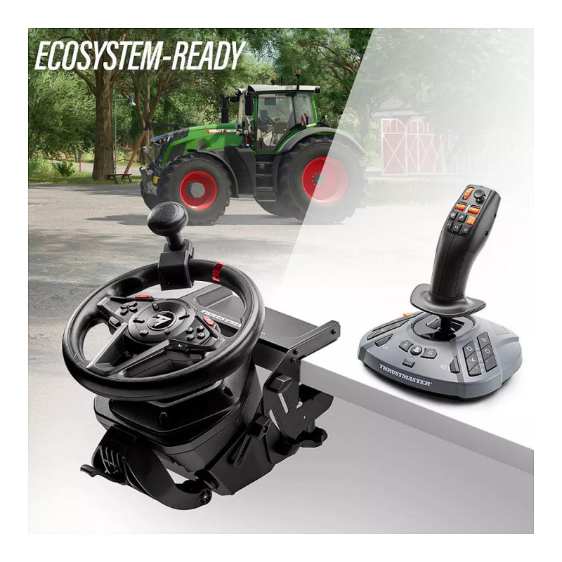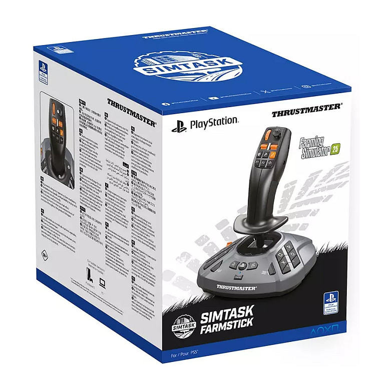 "Thrustmaster SimTask FarmStick. Device type: Flightstick, Gaming platforms supported: PC, PlayStation 5, Gaming control technology: Analogue / Digital. Connectivity technology: Wired. Product colour: Black, Compatibility: Farming Simulator 25. Power source: Cable. Windows operating systems supported: Windows 10, Windows 11"\n"SIMTASK FARMSTICK is the joystick designed for controlling farming and heavy machinery, developed based on Thrustmaster's know-how in flight simulation.
