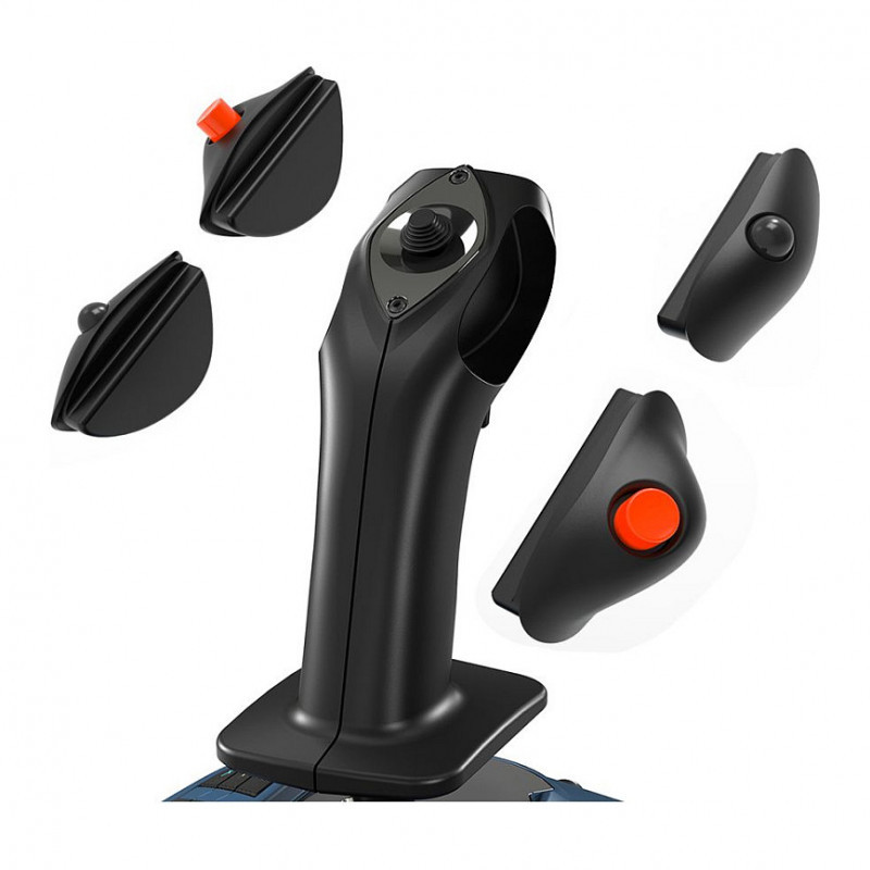"Thrustmaster TCA Sidestick X Airbus Edition. Device type: Joystick, Gaming platforms supported: PC, Xbox, Gaming control function buttons: Directional buttons, Menu button, Select button, Share button, View button. Connectivity technology: Wired, Device interface: USB, USB connector type: USB Type-A, USB Type-C. Product colour: Black, Grey, Certification: FCC, EAC. Power source: Cable. Width: 195 mm, Depth: 195 mm, Height: 225 mm"\n" Thrustmaster TCA Sidestick X Airbus Edition, Ergonomic Replica of The Airbus Sidestick, Officially Licensed for Xbox Series X|S & Windows, Ambidextrous, Swappable Modules, Built-in Airliner Function
